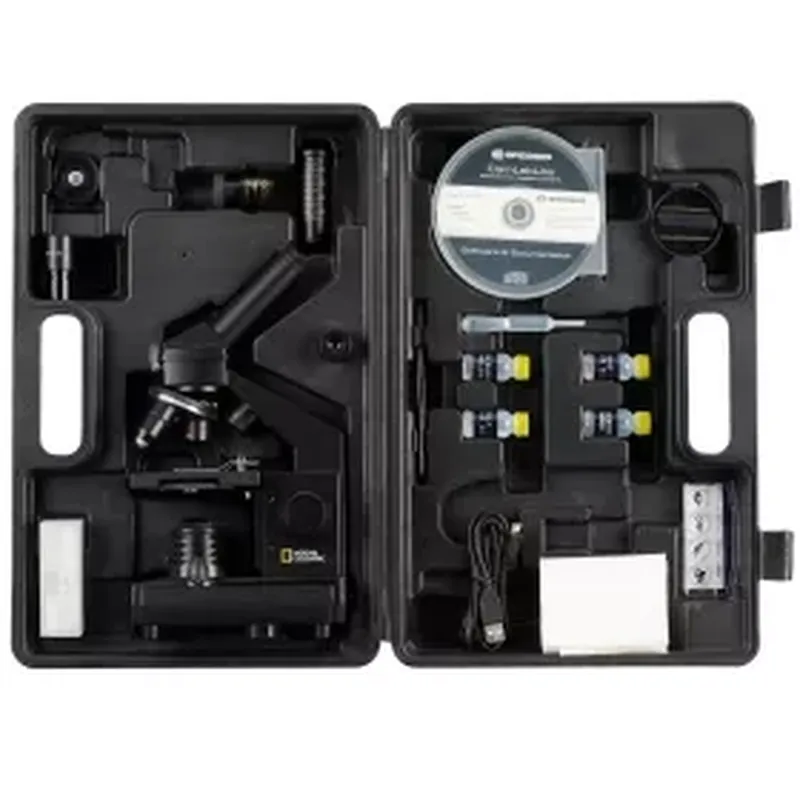 USB göz merceği ve taşıma çantasıyla birlikte gelen, hem okul hem de hobi kullanımı için ideal bir başlangıç mikroskobu.